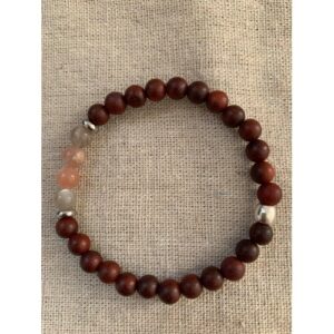 Bracelet pierre naturelle de Pierre de Lune et bois de rose