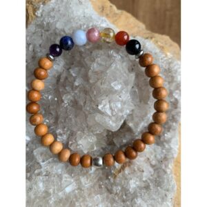 Bracelet pierres naturelles 7 chakras et bois exotique naturel