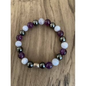 Bracelet pour la MEMOIRE – Hématite, Améthyste et Calcédoine