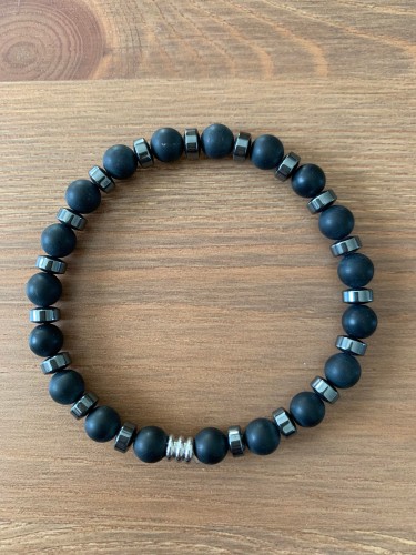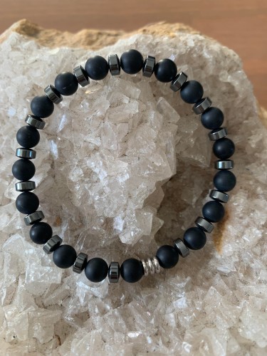 bracelet perles boutons onyx mat et hématite