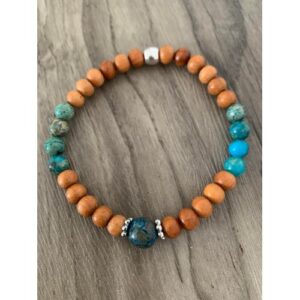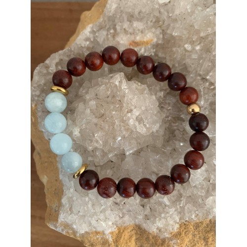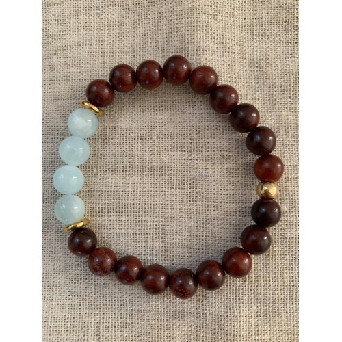 Bracelet pierre naturelle Aigue marine et bois de rose