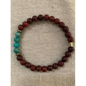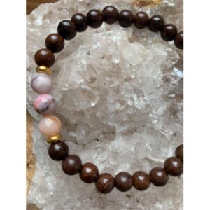 bracelet perles bois de rose et aigue marine