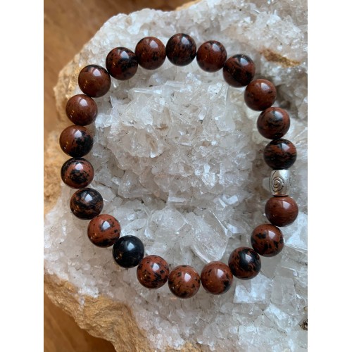 obsidienne acajou ou mahogany bracelet perles