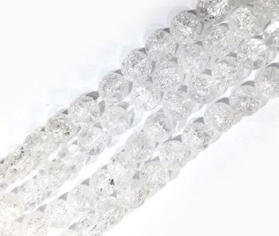 Perles cristal de roche craquelé 8 mm à l’unité en lot ou fil complet