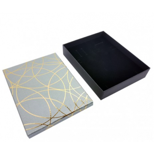 Ecrin bijoux bracelet ou parure de couleur noir, couvercle rouge, gris ou bleu avec un liseré brillant.