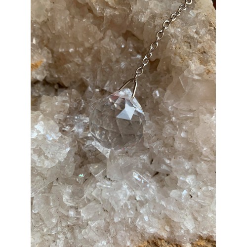 cristal de roche pendule boule à facettes